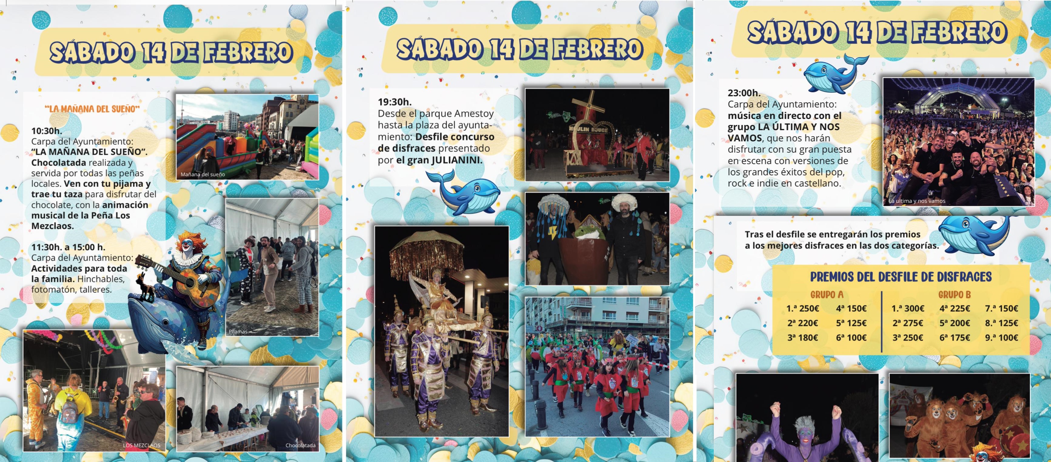 • La jornada del sábado 14 febrero comenzará con La Mañana del Sueño, con el reparto de chocolate y sobaos a cargo de las peñas locales y la animación de la peña Los Mezclaos. Durante toda la mañana habrá hinchables y talleres familiares pensados para el disfrute de pequeños y mayores.