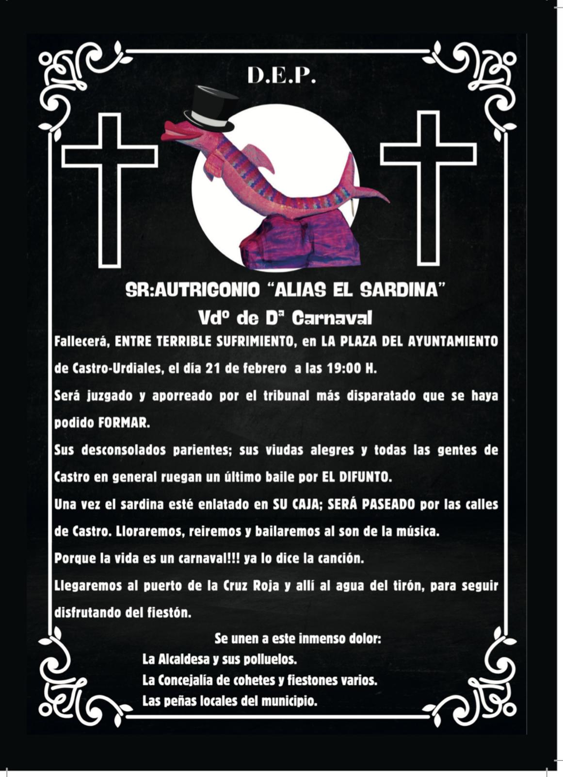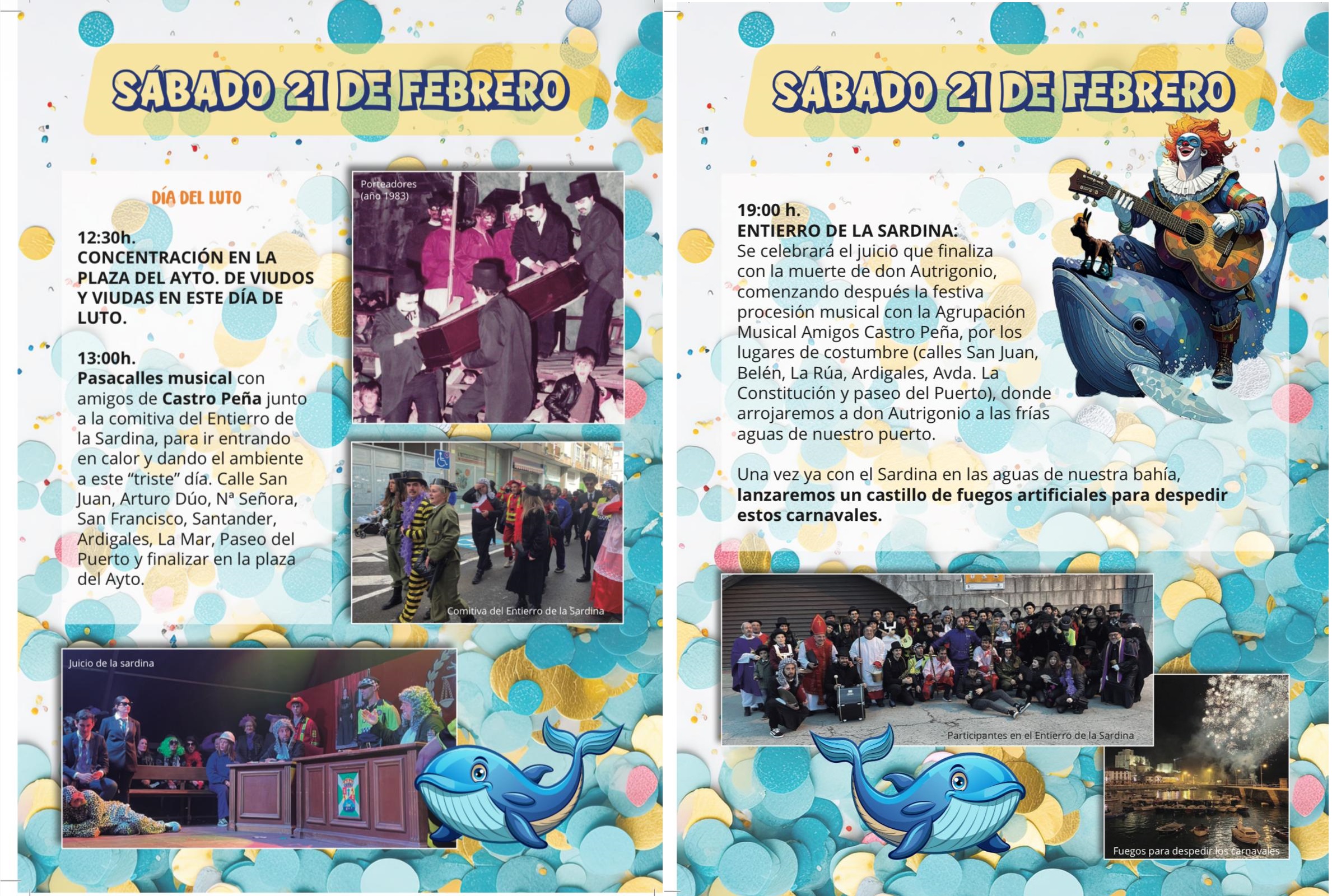 • El Carnaval se despedirá el sábado 21 de febrero con el tradicional Entierro de la Sardina, en el que se condenará a Autrigonio y se pondrá el broche final a estas fiestas.