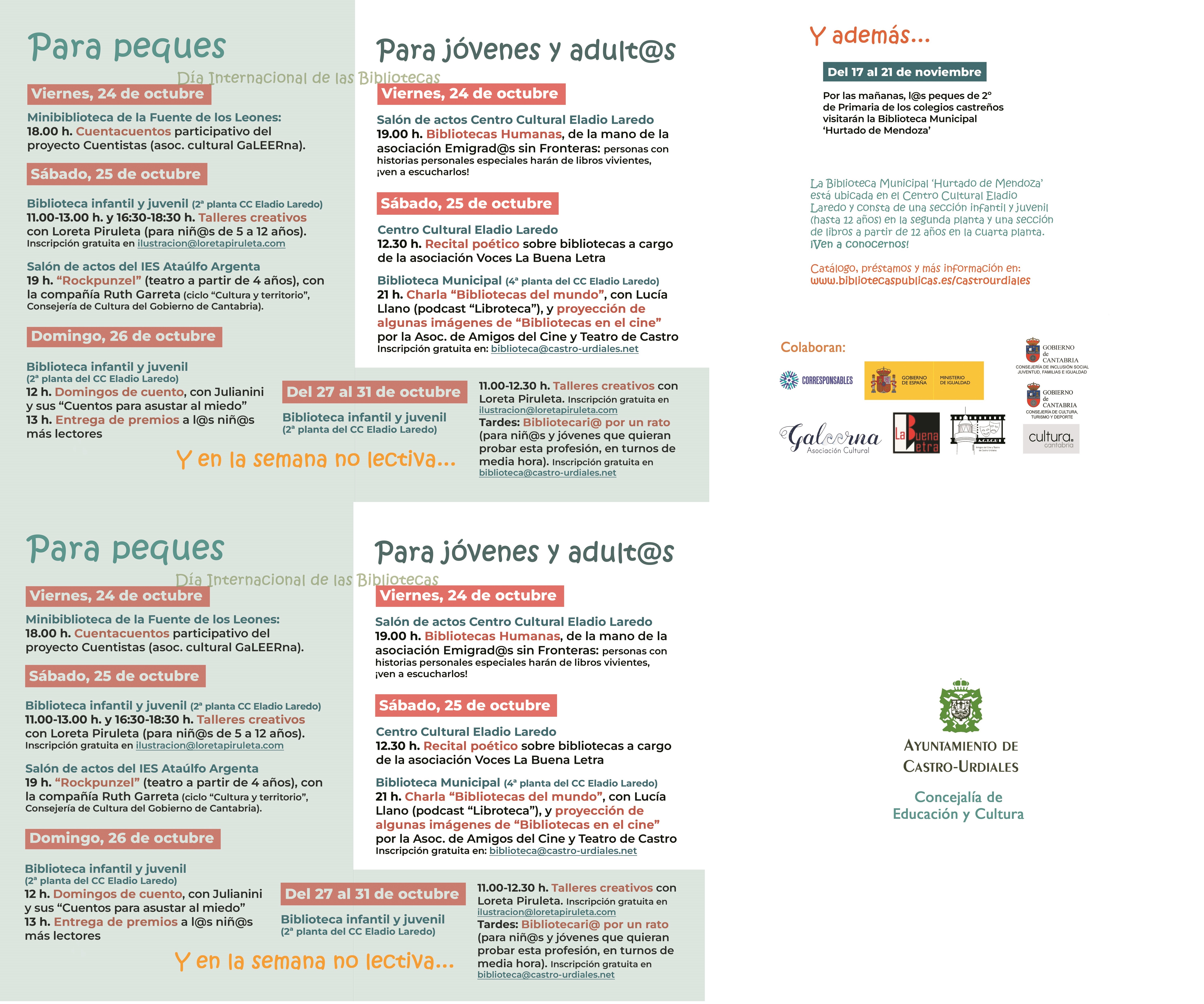 Catálogo, préstamos y más información en: www.bibliotecaspublicas.es/castrourdiales