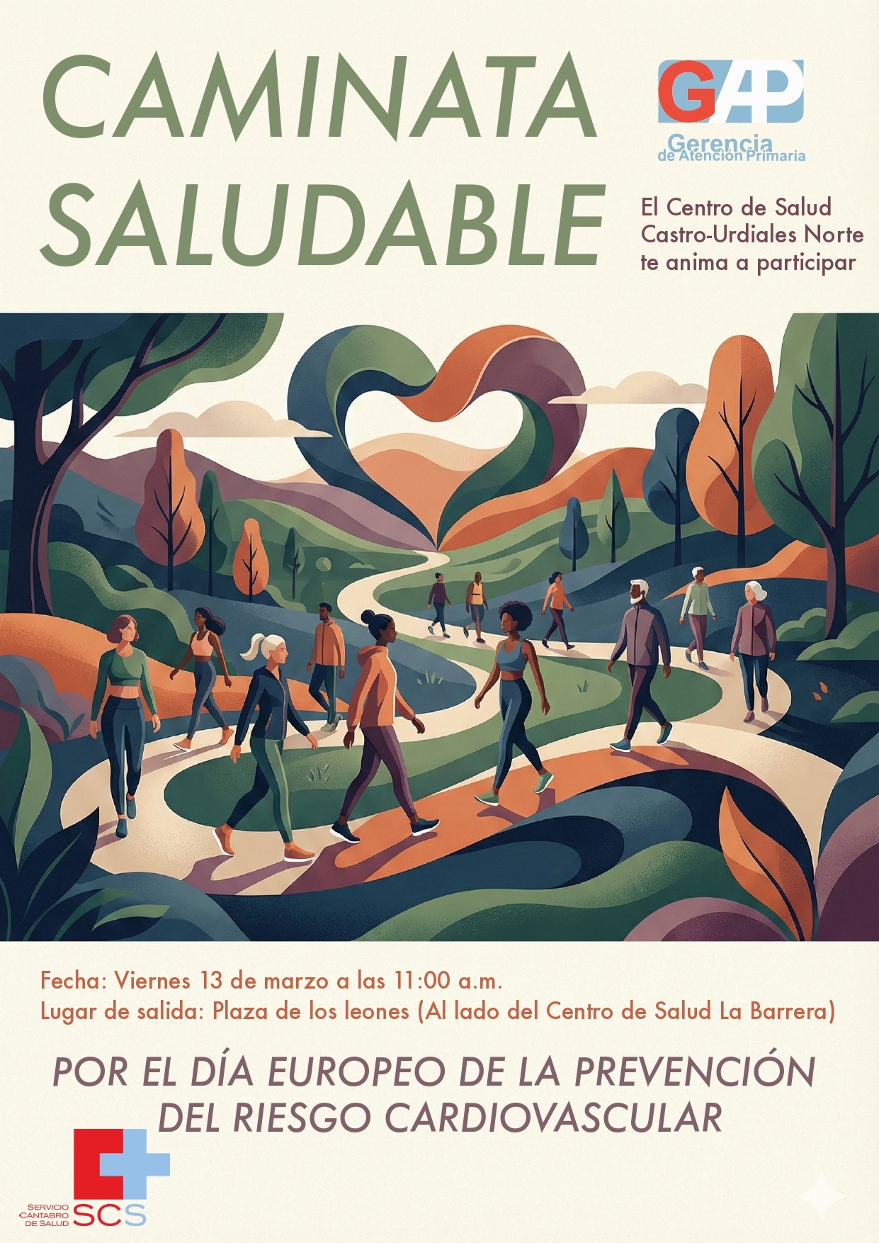 El Centro de Salud Castro-Urdiales Norte te anima a participar es esta caminata, abierta a la ciudadanía, que partirá desde la Plaza de los Leones (junto al Centro de Salud) a las 11h., llegaremos hasta el parque de Cotolino y volveremos de nuevo al centro.