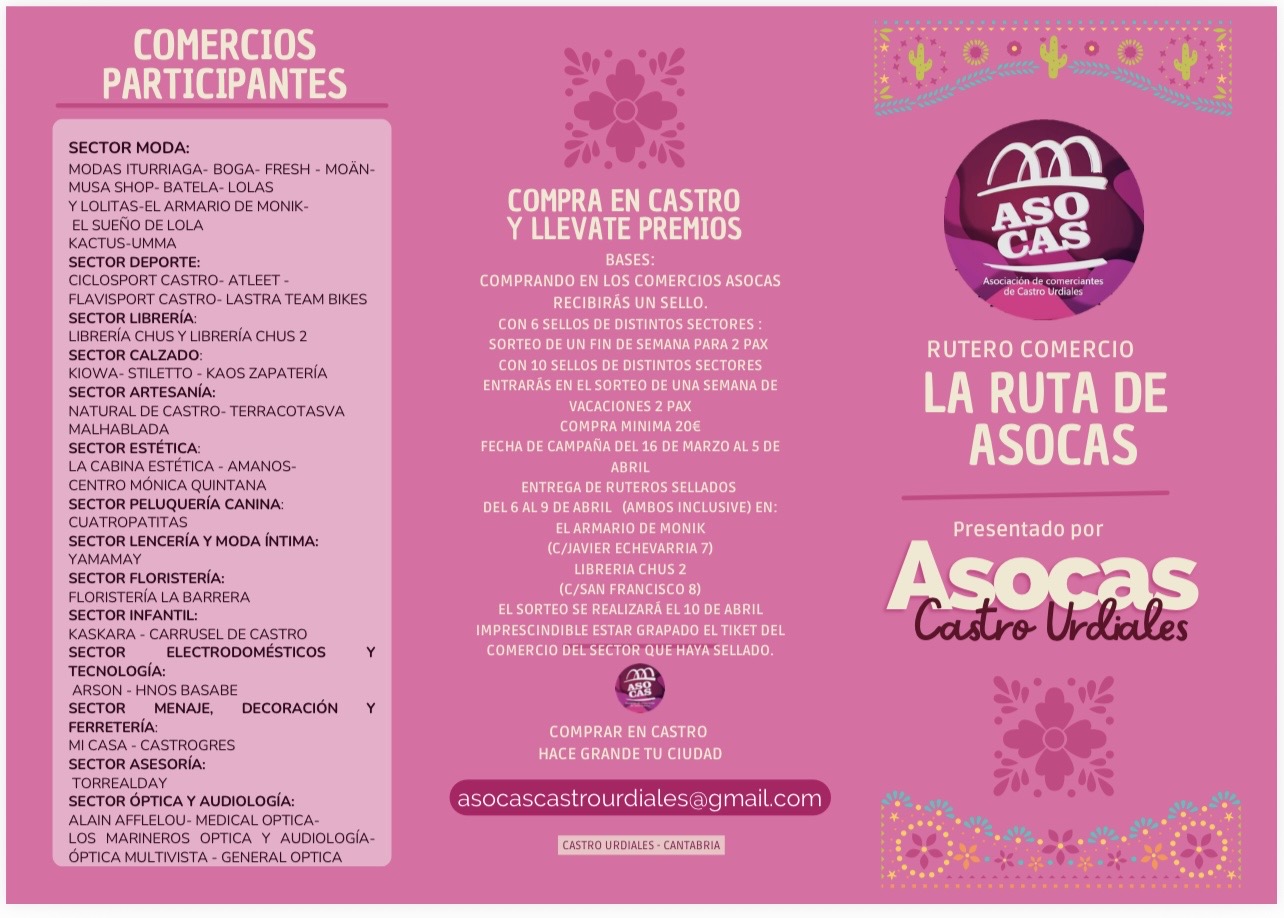 El Ayuntamiento de Castro-Urdiales a través de la Concejalía de Comercio colabora con la Asociación de Comerciantes Castreños (ASOCAS) que pone en marcha una nueva campaña de dinamización del comercio local, que se desarrollará entre los días 16 de marzo y 5 de abril.