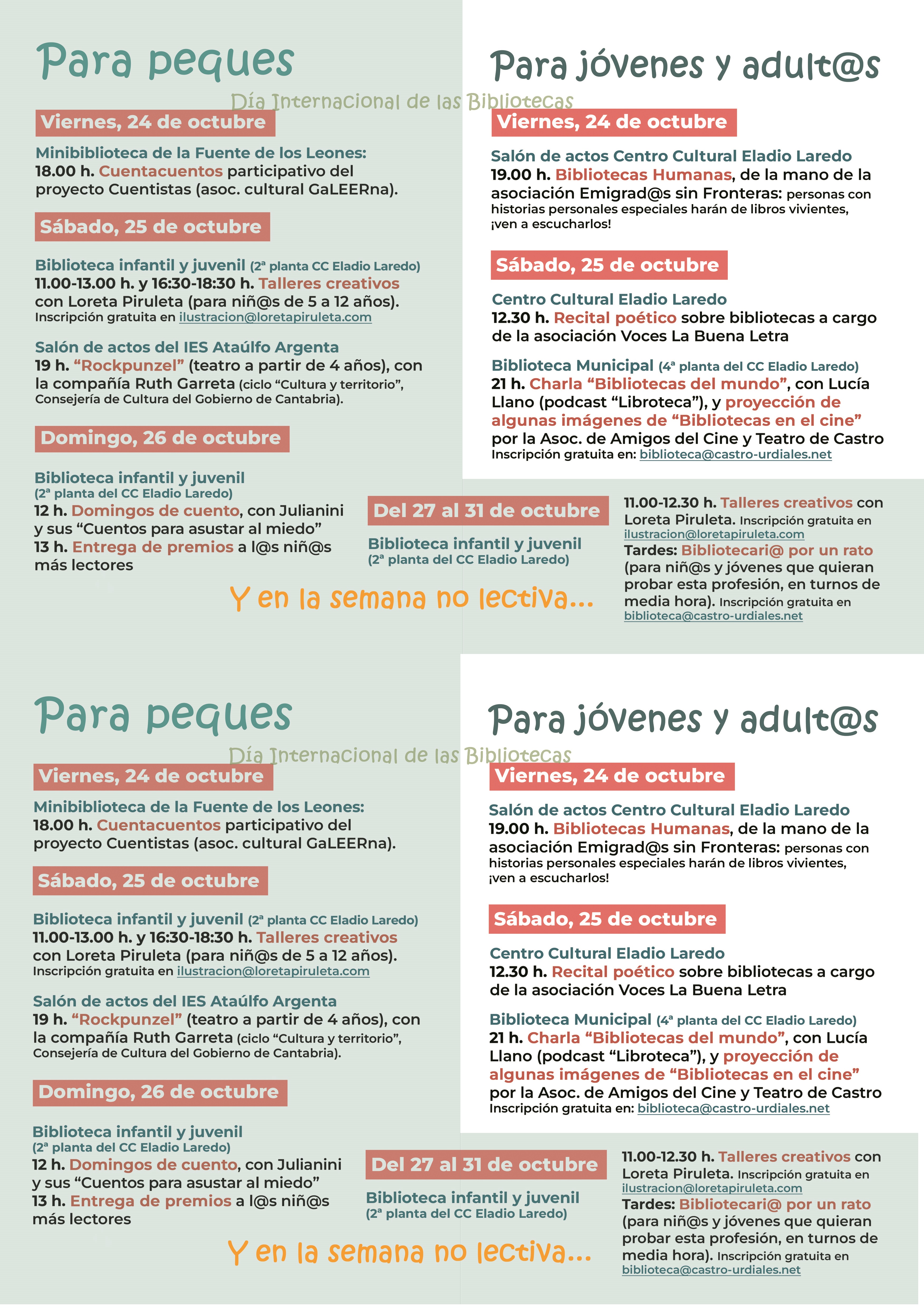 Catálogo, préstamos y más información en: www.bibliotecaspublicas.es/castrourdiales