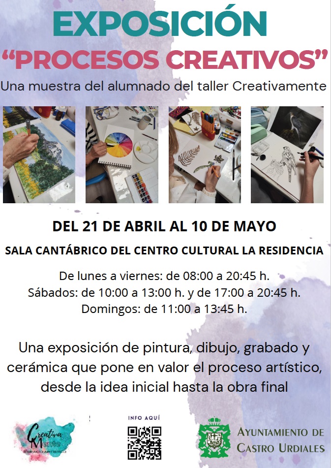 Muestra del alumnado del taller "Creativamente", una exposición de pintura, dibujo, grabado y cerámica que pone en valor el proceso artístico, desde la idea inicial hasta la obra final