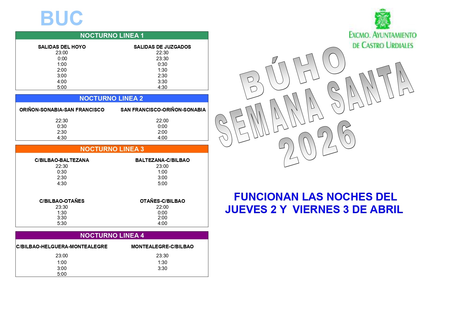 EL AYUNTAMIENTO DE CASTRO-URDIALES PONE EN MARCHA EL SERVICIO NOCTURNO BÚHO DE CASTROBUS DURANTE LA SEMANA SANTA 2026.
