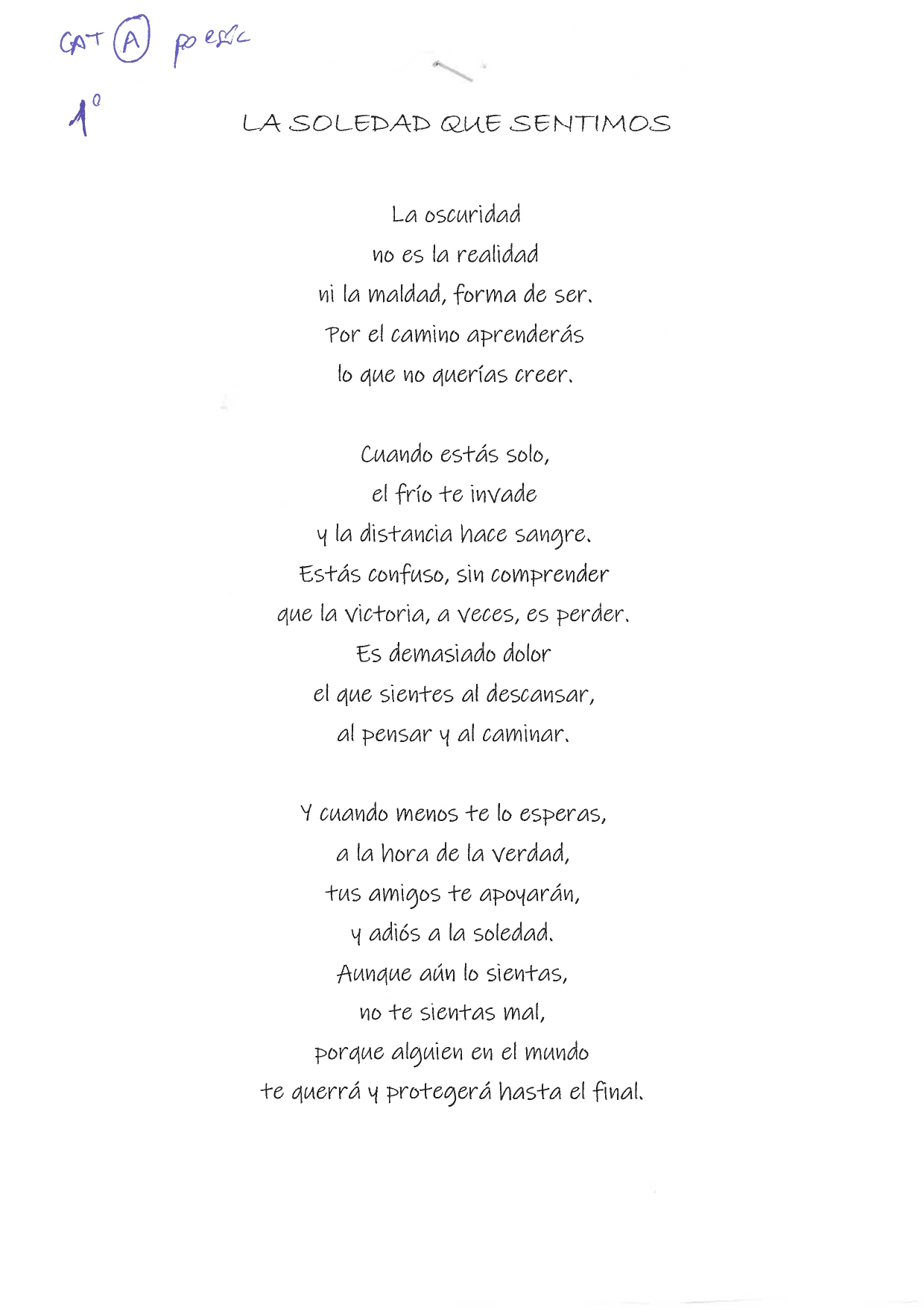 Premio a la mejor poesía : “La soledad que sentimos”, autora U.M.H.